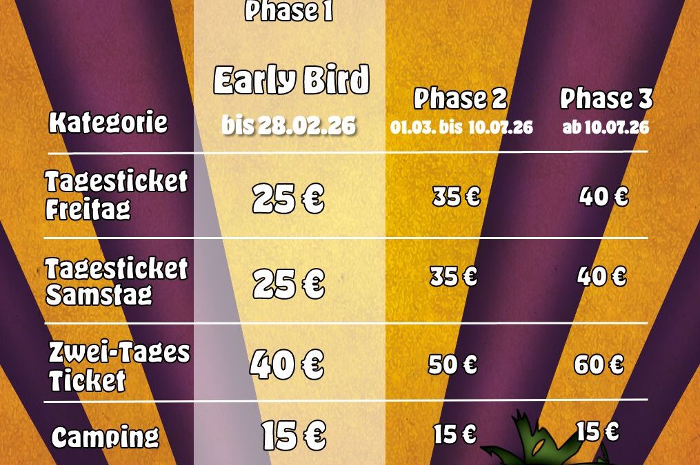 Des Weiteren stellen wir euch für maximale Transparenz unsere Preisstaffelung vorab bereit! So seht ihr direkt wie viel ihr euch im VVK sparen könnt! Bei einer Gruppe von fünf Personen spart ihr euch bei Wochenendtickets 100 € wenn ihr jetzt schon zuschlagt!